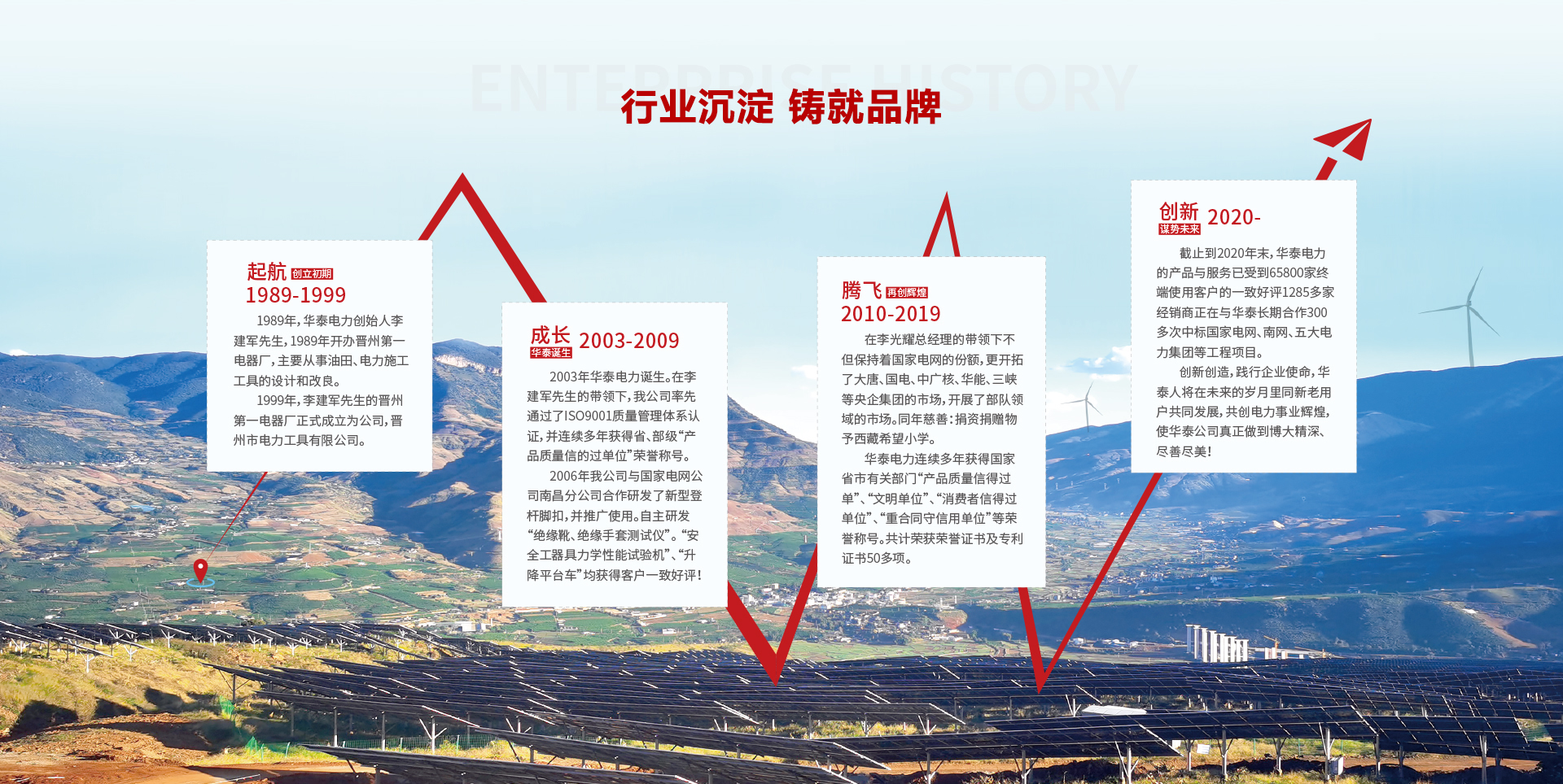 公司以“诚信、品质、创新、和谐”为企业宗旨、“开创电力安全工器具百年品牌”为企业愿景;拥有专利21项,其中发明专利4项、实用新型专利17项;产品销往全国各地,国家电网、南方电网、中国华能集团有限公司、中国华电集团有限公司、国家电力投资集团有限公司、中国大唐集团有限公司、国家能源投资集团有限责任公司、华润电力控股有限公司、中国广核电力股份有限公司、中国长江三峡集团公司、深圳能源集团股份有限公司、中国电力建设集团有限公司跟我公司保持长期合作关系。